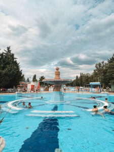 Остров Маргарет находится между Будой и Пештом, занимает около 100 гектаров. Мы поехали туда в купальни Palatinus, более доступные по цене, чем знаменитые Сечени или Геллерт и более подходящие для семей с детьми. По сути это комплекс бассейнов на любой вкус, как под открытым небом и водой с подогревом, так и под крышей на случай плохой погоды. Есть там и лягушатники с детскими развлечениями, и большие горки для взрослых. Просто почилить в джакузи там тоже есть где.