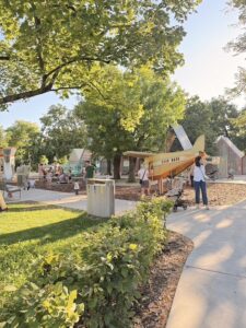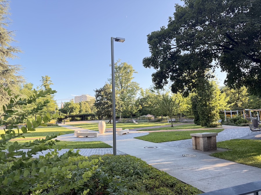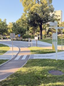 Помимо огромной детской площадки с бесконечными лазилками, игровым фонтаном и кафе неподалеку, есть еще и целый (бесплатный) Траффик-парк. Это территория, имитирующая часть настоящего города с дорогами, светофорами, переходами и знаками, на которой так здорово изучать ПДД, рассекая на детском велосипеде или самокате. Небольшие домики-беседки создают атмосферу жд-вокзала, а для горок-лазилок доступны симпатичные самолет, ракета, паровозик и другие транспортные средства. Место – топ! По иронии судьбы в парке мы оказались без детей, о чем я незамедлительно пожалела, но, с другой стороны, мы бы тогда точно застряли там до ночи и не успели посмотреть остальные части парка.
