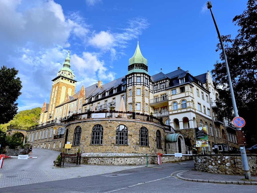 Дальше мы помчали уже к месту ночевки, в венгерский городок Miskolc. Сам по себе он ничем не примечателен, хоть и входит в пятерку крупнейших городов Венгрии. Выбрали мы его исключительно для ночевки из-за удобного расположения по маршруту. А вот куда бы я очень рекомендовала заехать по пути – это в местечко Lillafüred, к замку-отелю Palota, построенному в 1930 году. Красавец-отель так и просится стать местом основных событий в каком-нибудь знаменитом кино. Территория вокруг очень красивая и отлично подойдет для небольшой прогулки. Вдоль ручья можно пройти к пещере, а после вернуться к висячим садам и даже увидеть настоящий водопад, который, правда, при нас не работал. Но может вам повезет больше. 🙂