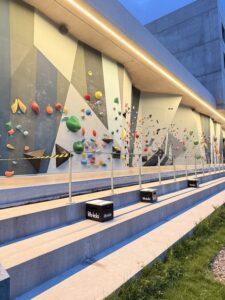 К вечеру нас ждали окрестности Линца. Именно там я забронировала отель-сюрприз, чтобы провести вечер дня рождения мужа как-то особенно. Необычность заключалась в том, что на первом этаже этого отеля находится их собственный боулдеринг-центр. Это как скалолазание, только без страховки и с цветными камушками-зацепками. Отель технологичный и демократичный, сотрудников мы видели только в баре. Приезжают туда, видимо, спортсмены из Линца или такие случайные путники как мы. К сожалению, особого сюрприза не получилось, т.к. незадолго до поездки муж повредил ногу и просто не смог воспользоваться возможностью. Но это все равно был достаточно бюджетный вариант ночевки в Австрии, так что мы ничего не потеряли. А понаблюдать за боулдеристами можно прямо из бара с панорамными окнами. Кстати, там есть и детская зона (и даже одна снаружи, вместе с небольшой детской площадкой), а завтрак включен в стоимость проживания. Так что рекомендую Boulderbar Hotel Leonding.