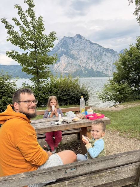 Из Линца мы направились в сторону Халльштатта (Hallstatt). Еще не доехав до главной точки, мы остановились на пикник с шикарным видом, который сулил еще больше красивого уже совсем скоро.