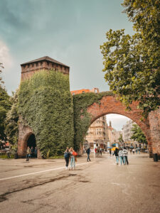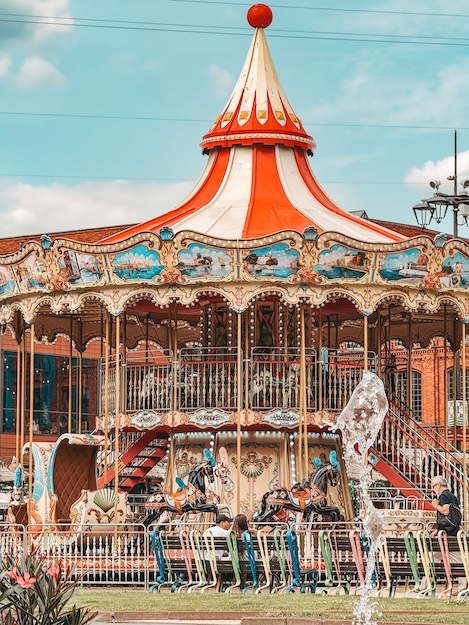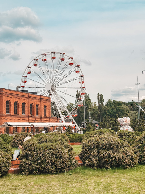 Лодзь мы вообще не планировали осматривать, но как раз доехали туда ко времени обеда. В гугле быстро нашелся ТРЦ Mаnufaktura, куда мы и решили заглянуть. Место оказалось очень симпатичным. Его открыли на месте бывшей текстильной фабрики. В большом открытом дворе между зданиями из красного кирпича расположились террасы ресторанов, магазины и другие заведениями с развлечениями. В центре стоит красивая карусель, а неподалеку даже есть колесо обозрения. Сам город мы, к сожалению, не успевали посмотреть.