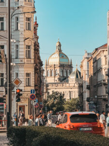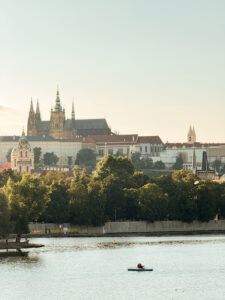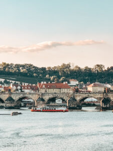 В Прагу мы доехали ближе к вечеру, и после заселения в отель сразу побежали на встречу. У меня есть давний мамский чатик «Дай обниму» с девочками из разных стран, где я уже много лет получаю и даю поддержку, которой порой так сильно не хватает. Благодаря этому чатику я обзавелась кучей классных виртуальных знакомств. А со многими с тех пор удалось познакомиться и вживую. В Праге как раз и случилось одно из таких живых знакомств с девочкой Лилей и ее двумя очаровательными детьми, которых я знала заочно уже несколько лет, а теперь знаю и вживую. Наши дети почти ровесники, а дочки еще и очень похожи по темпераменту, так что они мигом нашли общий язык и не могли расстаться, когда мы прощались. Мальчишки в силу возраста на контакт не пошли, но это не помешало нам чудесно провести вечер за разговорами с видом на Влтаву.